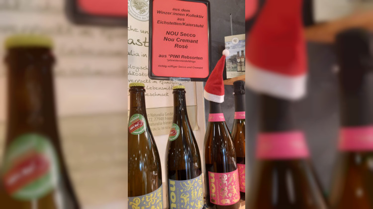 Der Naturalia Biomarkt führt Secco und Crémant aus dem Winzerkollektiv in Eichstetten am Kaiserstuhl. Die Weine tragen den Namen NOU. Sie stammen aus PIWI Rebsorten. Diese Sorten gelten als robust und eignen sich gut für den ökologischen Anbau. Die Produkte sind fruchtig und klar im Geschmack.